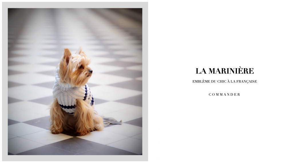 Inspiré du chic parisien, la marque est pensée comme un prolongement des vestiaires indémodables et intemporels de tous les amoureux de leurs chiens.